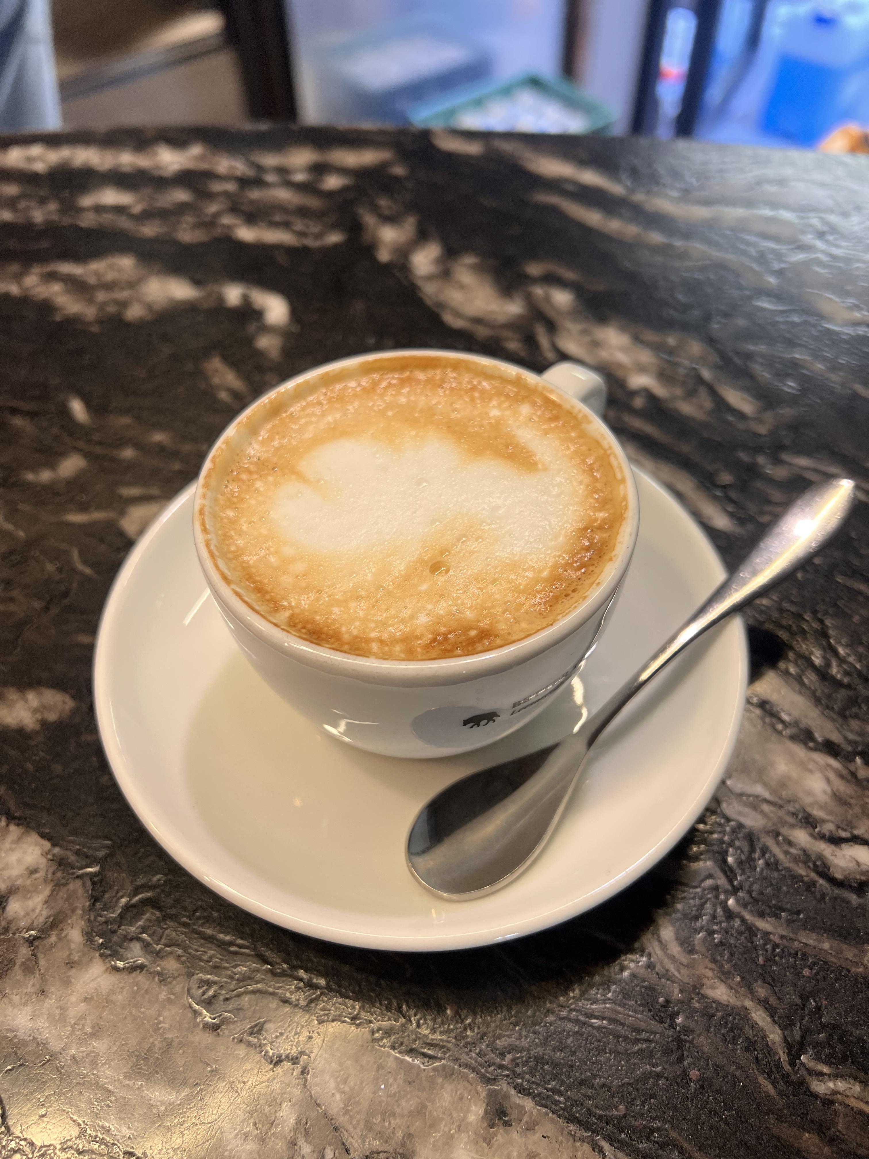 보통 우리가 생각하는 카푸치노는 적당한 두께와 촘촘한 스팀밀크를 생각하는데 이곳의 카푸치노는 조금 투박하고 거친 느낌의 카푸치노 였어요. 하지만 리사르이기 때문에 이러한것도 뭐랄까 분위기에 휩쓸려 아..이러한것도 이곳의 느낌인가? 스타일인가? 하게 됐습니다.